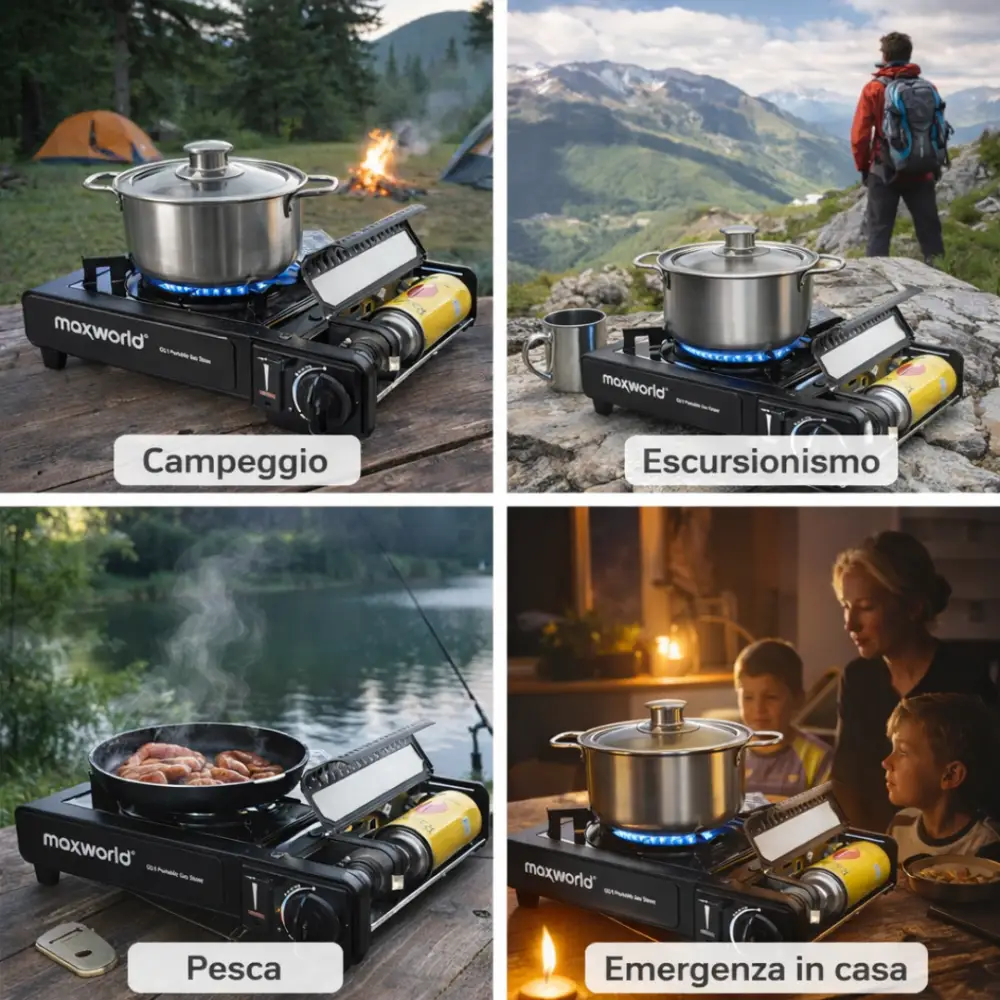 Il fornello da campeggio a gas portatile all‑in‑one è la soluzione perfetta per chi desidera cucinare in modo pratico, sicuro e veloce durante ogni avventura all’aperto o in situazioni di emergenza. Progettato per offrire prestazioni affidabili in un formato compatto, è ideale per campeggio, picnic, trekking, escursioni, pesca, viaggi in camper, van e caravan, ma anche come fornello di emergenza per la casa in caso di blackout o interruzioni di corrente.