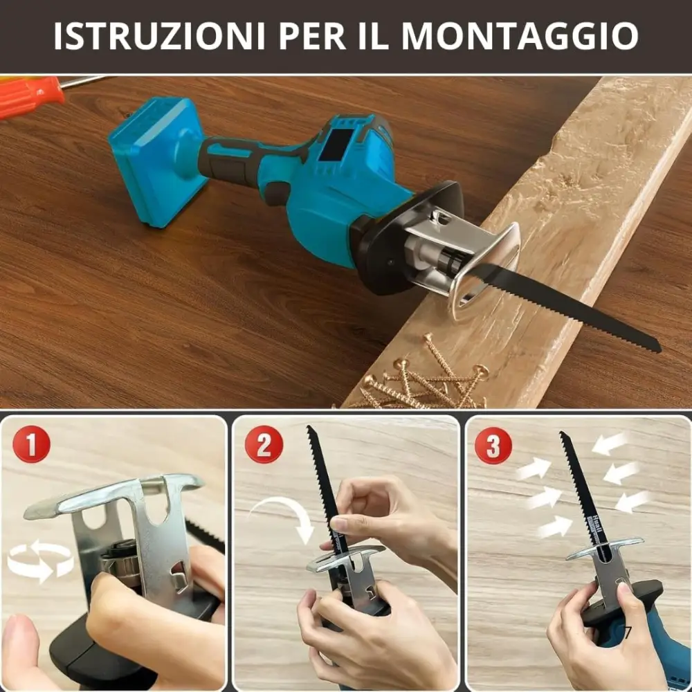 La Sega a Gattuccio a Batteria con Motore Brushless da 210W è lo strumento perfetto per tagli rapidi e precisi su legno, metallo e plastica. Con doppia batteria da 48V, velocità variabile e 4 lame incluse, è pronta ad affrontare qualsiasi progetto fai-da-te o professionale.